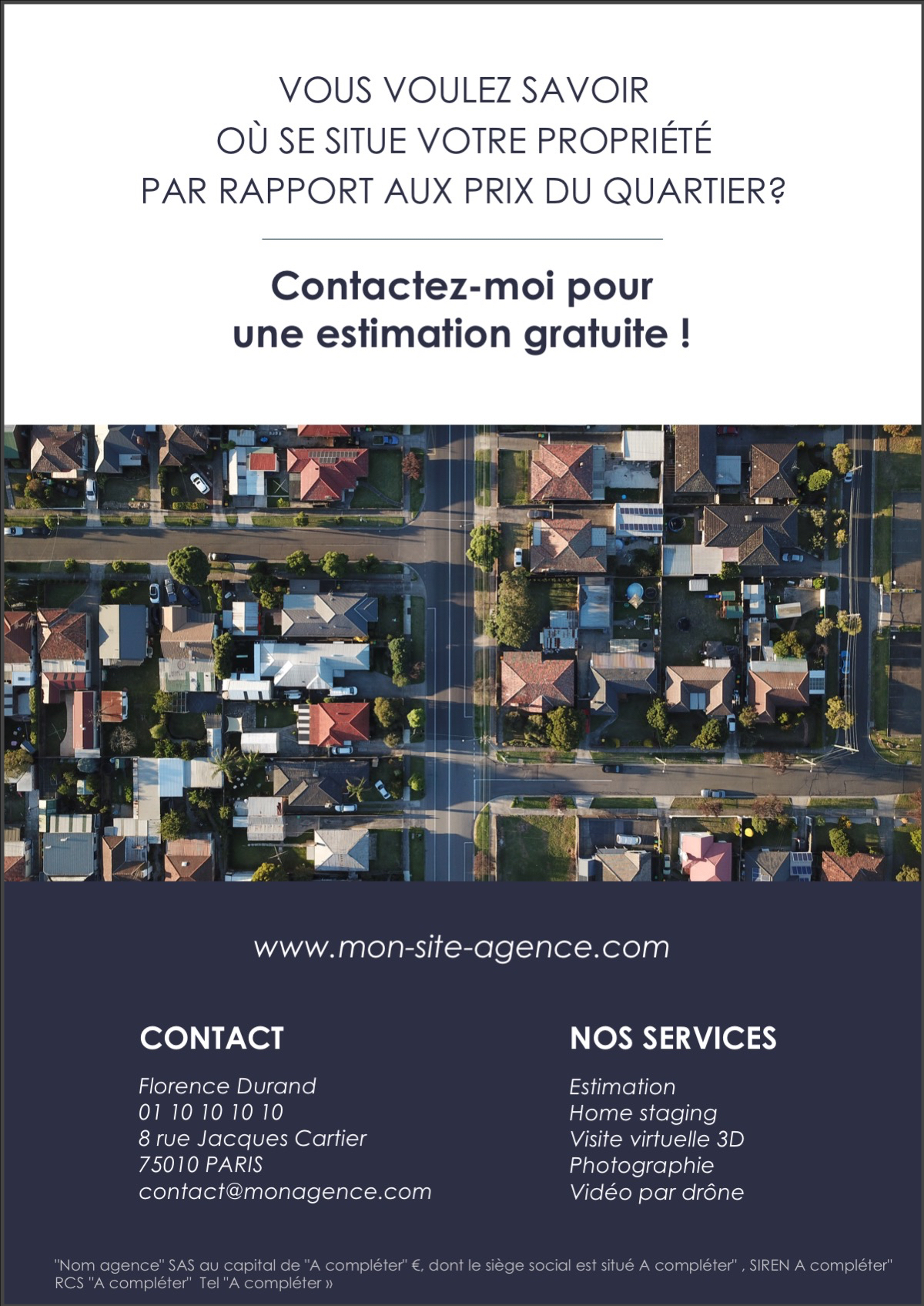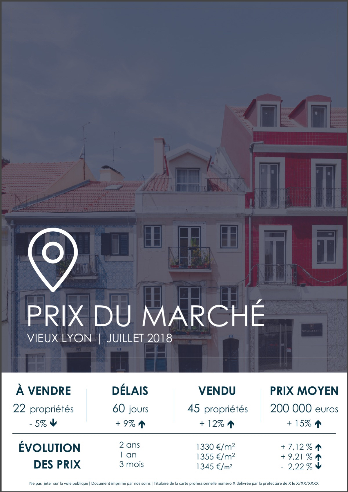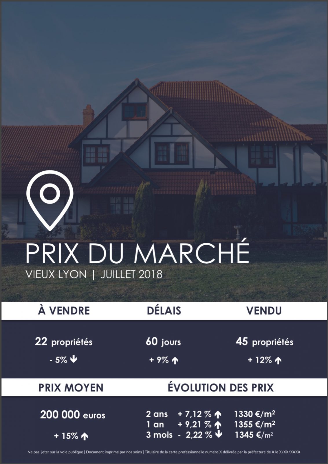 Avec ce support dédié, présentez régulièrement les données clés de votre marché . Faites le point sur votre marché à un moment donné et sur une période précise de l’année. Mettez en avant votre expertise pour introduire votre service gratuit d’estimation.